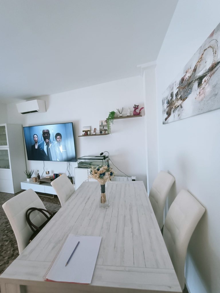 Cada detalle, desde la mesa redonda con base escultórica hasta la vegetación interior, ha sido pensado para transmitir equilibrio, calma y naturalidad. Un espacio diseñado para vivir con confort, belleza y conexión con el entorno mediterráneo.